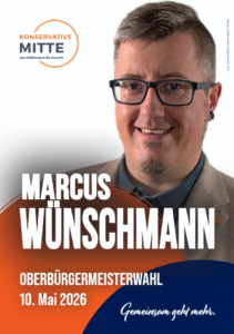 Die Konservative Mitte unterstützt ihr Vereinsmitglied Marcus Wünschmann bei seiner Kandidatur zur Oberbürgermeisterwahl in Dippoldiswalde. Damit die CDU-Amtsinhaberin abgelöst wird und wirklich konservative Politik ins Dippser Rathaus einzieht: Am 10. Mai 2026 Marcus Wünschmann wählen.